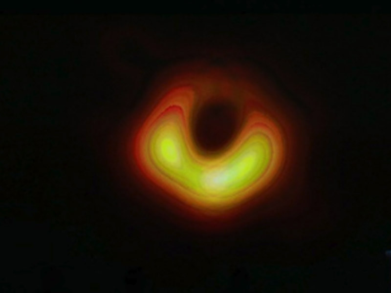 La histórica fotografía, obtenida a partir de una red de ocho observatorios situados en distintos puntos del mundo, consiste en un anillo con una mitad más luminosa que la otra, que corresponde al agujero negro supermasivo ubicado en el centro de la galaxia M87, a 53,3 millones de años luz de la Tierra.