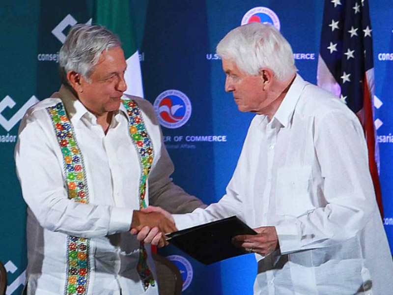 El dirigente empresarial estadounidense planteó que los aranceles impuestos por los Estados Unidos a México deben ser retirados como una medida de congruencia, pues ambos países están por concretar un nuevo acuerdo comercial.