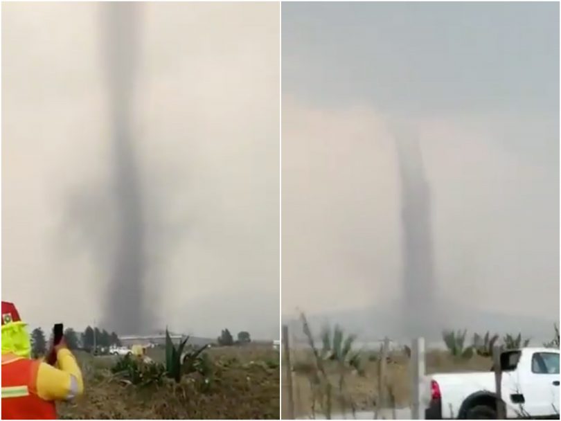 Un doble tornado se presentó este jueves en el poblado de Zaragoza, Hueyotlipan, en el estado de Tlaxcala, lo que provocó sorpresa entre los habitantes de la comunidad y los usuarios de redes sociales que viralizaron el evento.