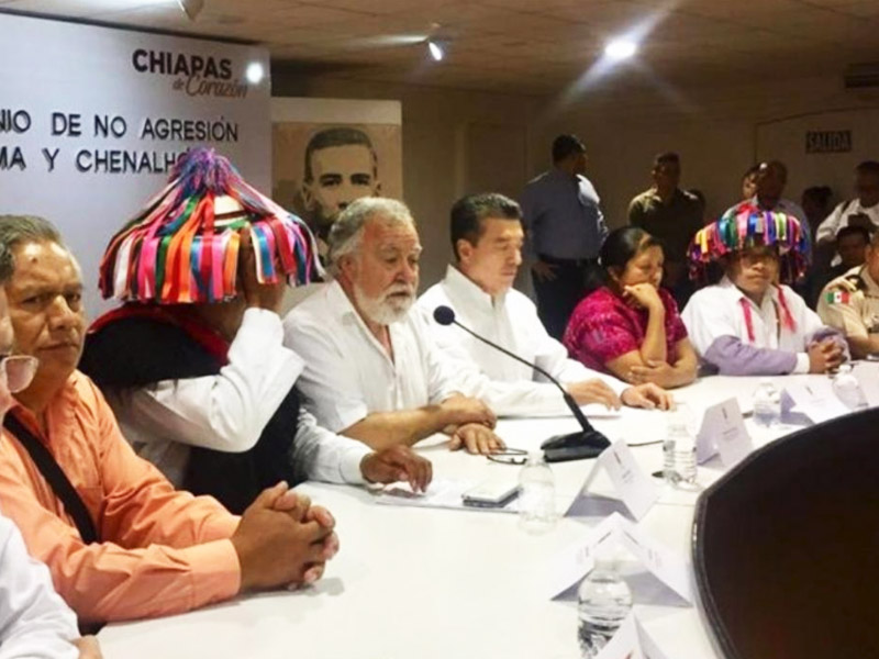 Alejandro Encinas, encabezó en Tuxtla Gutiérrez, la firma de un pacto de no agresión entre los ayuntamientos de Aldama y Chenalhó, que se disputan una extensión de 60 hectáreas de tierras y que ha llevado a vivir en la zozobra y en constantes balaceras entre ambas partes.